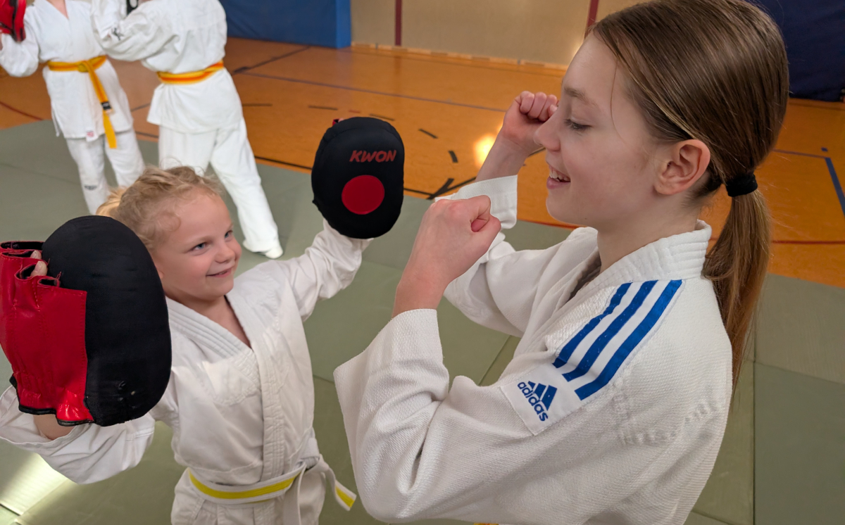 Zweimal im Jahr wird geprüft. Vor den Sommerferien und vor den Winterferien. Am 25. Juni durfte die Kindergruppe zeigen, was in ihr steckt. Dreizehn Prüflinge traten gut vorbereitet und entsprechend entspannt auf die Matte und demonstrierten eindrucksvoll, dass man noch nicht einmal ganz über den Küchentisch schauen können muss, um sich erfolgreich gegen ähnlich große…