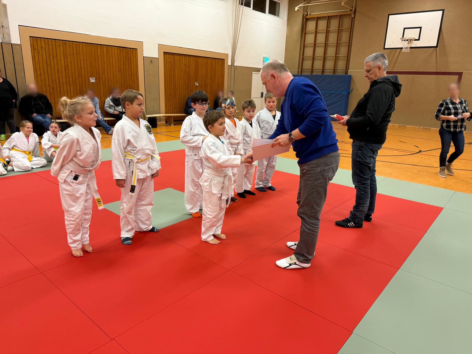 Vor Beginn der Weihnachtsferien findet in unserem Verein traditionell die letzte Prüfung des Jahres statt. Diesmal mussten die Prüflinge und natürlich auch die Prüfer hierfür etwas mehr Zeit als sonst aufbringen. Grund ist, dass es in unserer Sporthalle immer dunkler wird. Nein, es geht nicht um vergilbte Fenster oder defekte Lampen. Aber unsere Kinder und Jugendlichen haben schon viele Prüfungen erfolgreich absolviert und tragen deshalb immer dunklere Gurtfarben. Und je dunkler der nächste geprüfte Gurt ist, desto länger dauert die Prüfung, da mehr und komplexere Techniken präsentiert werden müssen.