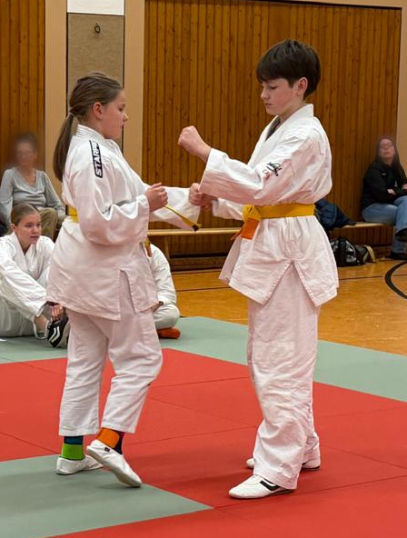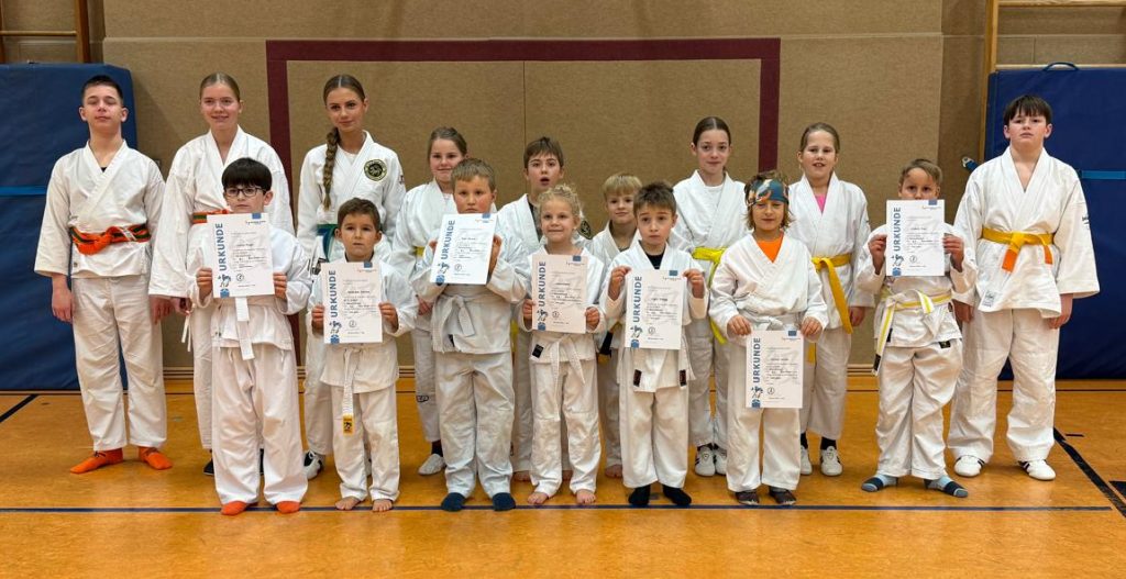 Vielleicht lag es somit an der langen Dauer, dass sich bei einer Prüfung leichte Rechts-/Links-Schwächen zeigten oder eines unserer jungen Mitglieder während der Veranstaltung aufstand und versonnen an seiner Kleidung spielte. Die Prüfer Norbert Jegerczyk und Michael Griethe hatten aber vollstes Verständnis hierfür und ließen deshalb die Kleinsten nach gelungener Prüfung vorzeitig gehen, sodass nur noch die Älteren bis zum Ende ausharren mussten. Und auch die erledigten alle geforderten Aufgaben mit großem Können.
