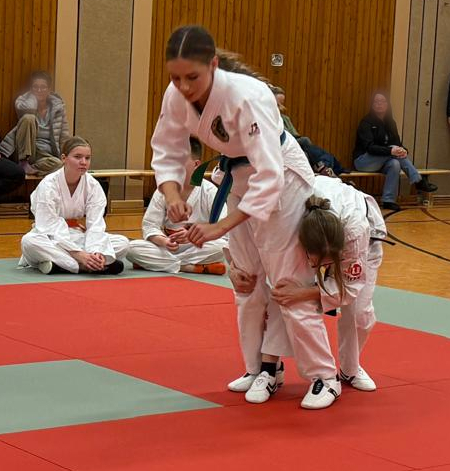 Mira Beulke hatte sich zur Blaugurt-Prüfung gemeldet. Hierfür ist ein externer Prüfer notwendig. Martin Fiedler, Trainer beim Duderstädter Ju-Jutsu-Verein Red Dragon, erklärte sich bereit, diese Aufgabe zu übernehmen. Und natürlich war auch Mira erfolgreich, sodass unser Verein nun neben unserer zweiten Vorsitzenden, Alice Nolte, über ein zweites weibliches Mitglied verfügt, das den blauen Gurt trägt.